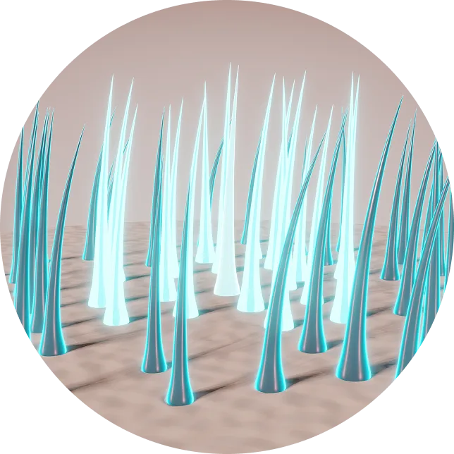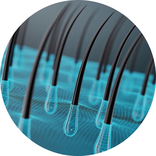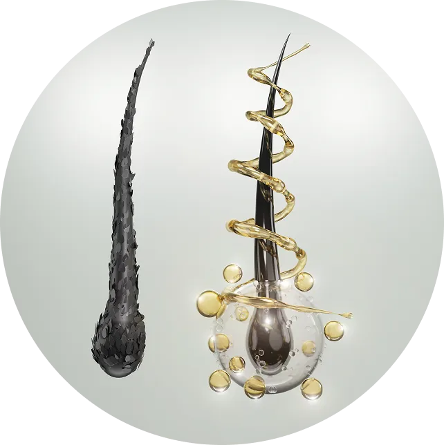 Enhances the function of deteriorating hair follicles, bringing them back to life.